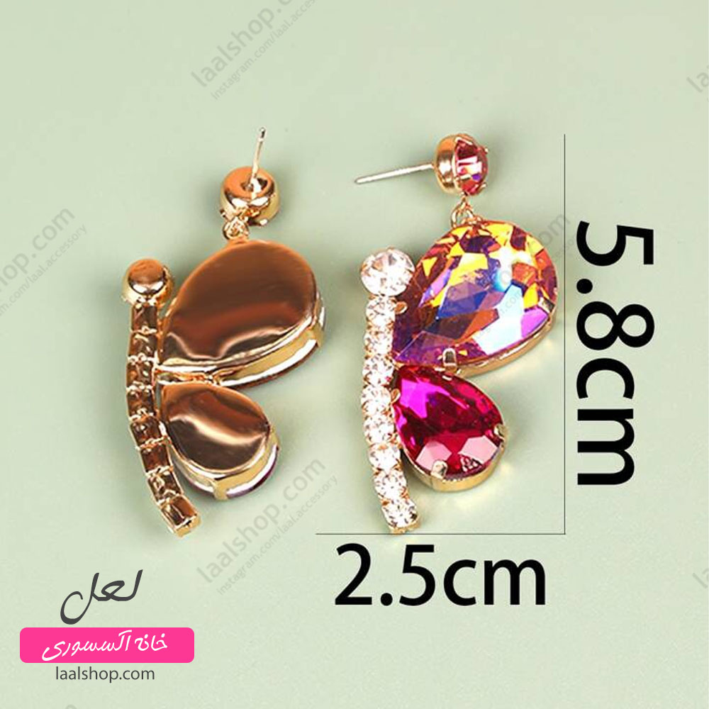 گوشواره فشن زارا آویز پروانه نگین دار دو نیم